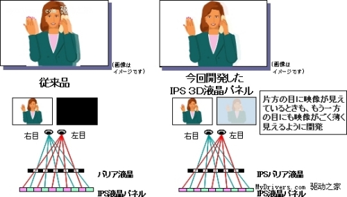 這里先要回顧一下視差屏障(視差光柵)技術,因為自從夏普宣布全球首款裸眼3D觸摸屏以來,以后推出的包括日立3D IPS屏在內的裸眼3D顯示屏幾乎都是基于該項技術。