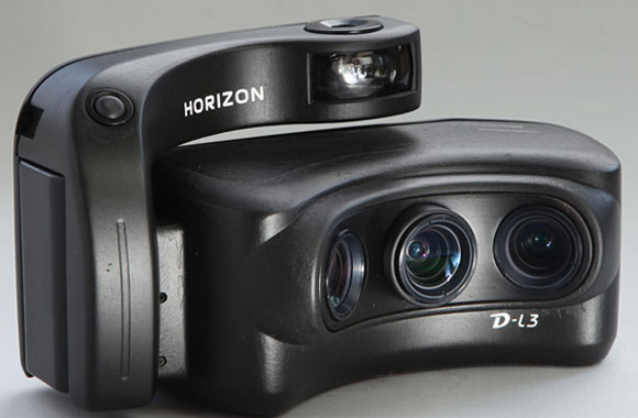 這款由俄羅斯相機大廠Zenit公司與意大利大中幅相機生產公司Silverstri聯手推出的Horizon D-L3,集成了三枚500萬像素的感光元件以及三支28mm f/3.5的定焦鏡頭,并搭載了一枚4.3英寸的LCD顯示屏,支持SDHC存儲卡。
