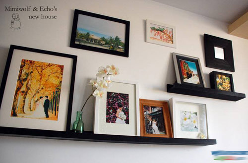 本來想按照宜家的照片墻照抄的,奈何宜家的墻巨大,俺家的墻低矮,對尺度估計不足。只好自我發揮。
