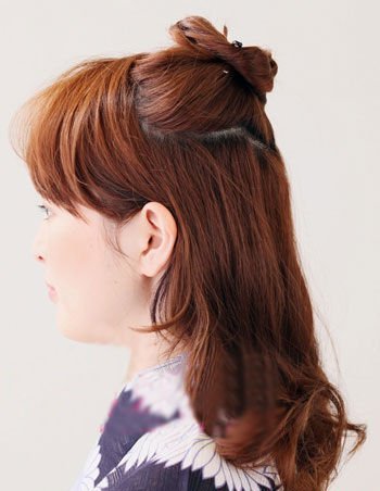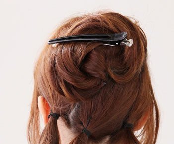 ????第四步:抓起發尾轉圈用玄色的U型發夾固定。