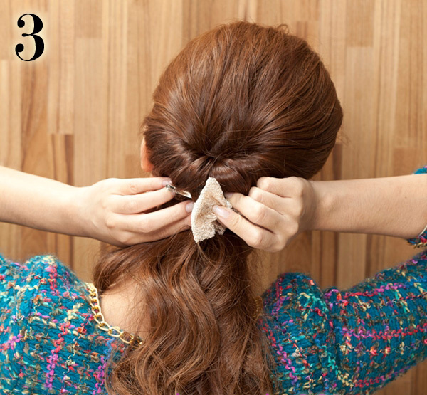 3、發束順時針扭轉固定,以U型夾往后收,就有自然蓬感
