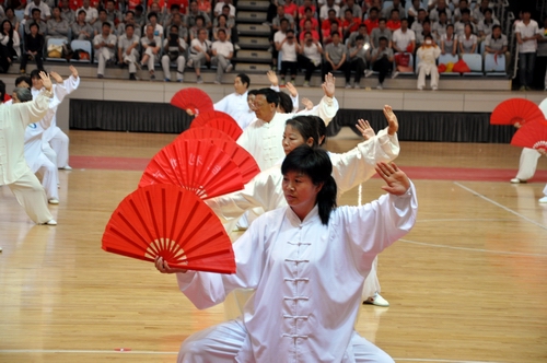 ????開幕式后,由周口市教育局、周口市公路局、周口市直機關事務管理局、周口市直幼兒園四個參賽單位共同表演的第九套廣播體操拉開了文體表演的序幕。周口師范學院推薦的青春健美舞,周口太極協會的太極刀、太極劍、太極扇表演,周口市秧歌協會推薦的中老年健美舞和周口三通武校帶來的精彩武術表演等全民健身項目展演。