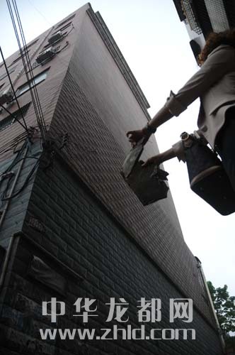 ????昨日,記者來到周口市區七一路與工農路交叉口西側的周口市工信局辦公樓。記者注意到,這是一棟臨街樓,其中一樓、二樓是一家正在營業的藥店。樓東面是一條胡同,穿過胡同是周口市工信局家屬院。這條胡同是居民們進出的唯一通道,脫落水泥塊的地方就是胡同的正上方的樓頂。記者看到,接近樓頂的外墻上,鑲嵌著兩行水泥制作的裝飾物。脫落的水泥塊就來自這種裝飾物。