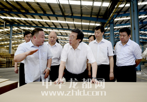 ???????在大河林業有限公司,郭庚茂進車間、看工藝、問發展,他對企業通過調整產品結構、加強戰略合作,開發差異化產品、提高產品附加值的做法表示贊許,并對企業計劃開發的無醛板進行詳細了解,要求加快研發進度,盡快研制成功。