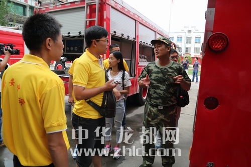 ????當日上午10時30分,網友記者們一行來到了周口市公安消防支隊特勤中隊。消防官兵首先向網友講解了生活中的消防安全小常識和注意事項,介紹了滅火器的使用方法以及家庭消防安全知識和火場逃生技巧等。接著,組織網友參觀了滅火水罐車、登高平臺車、照明車、搶險救援車等執勤車輛和搶險救援裝備器材,對于消防搶險滅火車輛,網友們都充滿了好奇。講解員詳細描述了每一輛消防車的功能,感興趣的網友還親自坐了坐消防車,過了把當消防員的癮。隨后,講解員帶領大家來到車庫,網友們還認識了解了水槍、戰斗服的不同分類及使用方法。熱心網友李土豆親自還試穿了戰斗服和搶險救援服,變身消防員拍照留念。穿著戰斗服的李陽激動地說:“消防戰士太不容易了,這身衣服加上裝備少說也有幾十斤,我們的戰士們不僅要穿著它們進火場,還要靈活地完成各項救援任務,消防戰士太偉大了!”