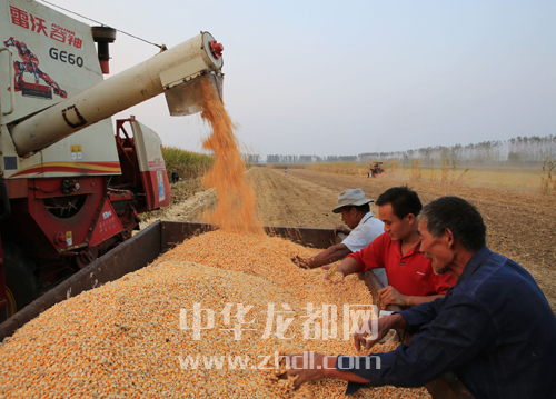 ???? 圖① 9月27日,扶溝縣大李莊鄉馮老村農民正在收玉米。該縣各鄉鎮群眾抓住天氣晴好的有利時機,組織協調機械收秋,做到成熟一塊收割一塊,確保顆粒歸倉。黃金峰 攝????