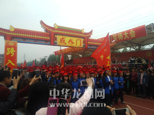 ????4月28日上午,鄲城一高舉行第八屆18歲“成人禮”儀式暨奠基高考決戰2017誓師大會。該校高二年級3000多名學生在家長和老師的陪伴下,戴“成人帽”、跨“成人門”,并向2017年高考發起決戰,詮釋著對青春成長的感悟和對美好未來的憧憬。