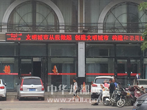 ????為全力打好省級文明城市創建攻堅戰,很多商家也積極加入進來,用各自力所能及的方式來支持“創城”工作。圖為中心城區一酒店在門前的LED顯示屏上打出創建省級文明城市的宣傳標語。