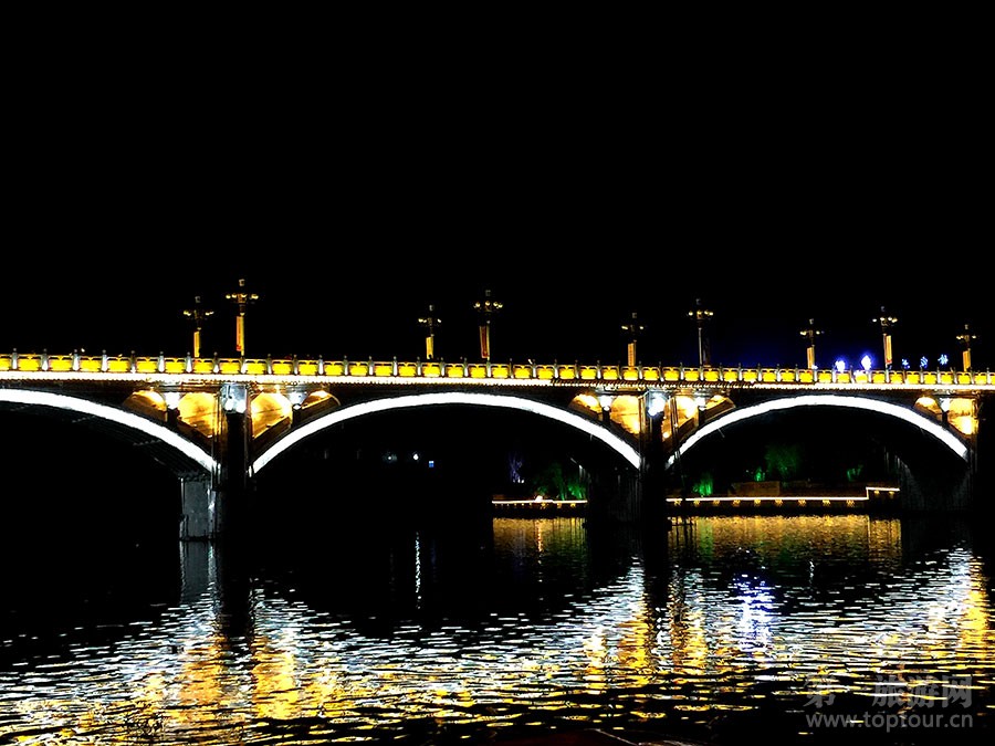 ????下司依水而建,夜晚大橋燈火璀璨