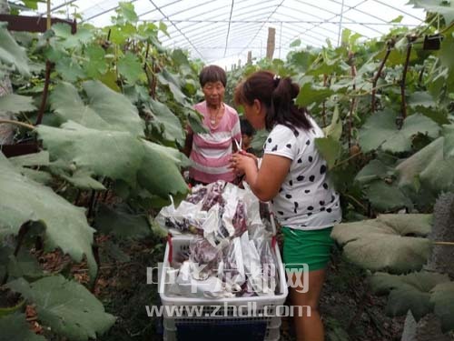 ????在農場的葡萄大棚里,一串串葡萄被套上了塑料袋,形成了五顏六色的奇特景觀,社員正忙著采摘裝箱(如圖)。農場技術人員介紹:“給葡萄套袋,可以明顯改善果實品質,保護果實不受病蟲害侵襲,減少農藥殘留,防鳥啄食,改善果實外觀,提高果品檔次,是當前生產高品質、無公害葡萄的有效措施。”