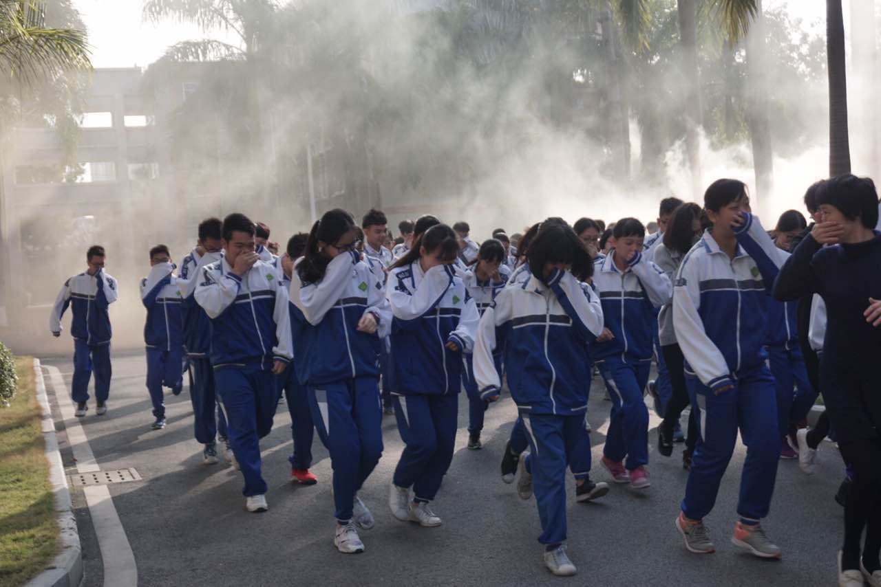 廣州市高中今天正式開學(xué)。廣州市第八十中學(xué)開學(xué)第一天的升旗儀式是在濃煙和警報聲中開始的。 6日早上九點,學(xué)生們剛剛結(jié)束“安全教育第一課”的理論學(xué)習(xí),一場消防應(yīng)急演練實操就開始了。警報一拉響,老師便迅速組織學(xué)生進行疏散逃生,學(xué)生們捂住口鼻,弓下身子,有序地沖出教室。五分鐘內(nèi),全體師生都順利疏散到操場上集合完畢。 將校園安全放在十分重要的位置,已經(jīng)成為很多學(xué)校的常態(tài),但把安全教育和消防演習(xí)作為“開學(xué)第一課”的內(nèi)容尚屬首次。校長袁閩湘表示,廣州市第八十中學(xué)地處流溪河畔,105國道從校門口穿過,屬于典型的城鄉(xiāng)結(jié)合部學(xué)校,交通、防溺水、防火等安全教育和管理壓力較大。