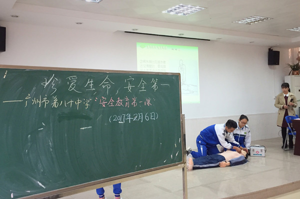 在學(xué)術(shù)報告廳內(nèi),老師為學(xué)生講解校園安全知識,并由三位代表學(xué)生現(xiàn)場演示如何為溺水后的學(xué)生進行心肺復(fù)蘇。全校近2000位學(xué)生和老師在現(xiàn)場或者通過班級內(nèi)的視頻直播觀看學(xué)習(xí)。高二(4)班學(xué)生鐘靜文表示,比起以前的班會課,這次的“安全教育第一課”將講解和演練相結(jié)合,能更直觀地學(xué)習(xí)到消防知識。 此外,廣州市各高中都利用開學(xué)禮、班會課、課堂教學(xué)、專題講座、應(yīng)急疏散演練等方式開展“安全教育第一課”。在廣州市第六中學(xué),場景模擬和應(yīng)急疏散等方式讓學(xué)生接受了一場別開生面的安全教育。 “過年了,我來給爸媽炸個油角吧!”一名男生得意洋洋地當起了“廚神”,卻被濺起的油星燙傷了手背。“哎呀,乖孫!燙傷了!趕緊抹醬油吧!這個土方法最管用了!”男生的“奶奶”忙不迭地說。逗趣的演繹讓全班人樂不可支。一名男生說出了正確的方法:“用流動的冷水沖洗燙傷部位最少10分鐘,情況嚴重時需送醫(yī)院治療。不要涂抹油脂藥膏等物品,因為油脂會阻止熱量散發(fā),使燙傷更嚴重。在燒燙傷處涂抹膏藥,是后續(xù)治療時采取的。”除了燒燙傷的應(yīng)急處理外,學(xué)生們還現(xiàn)場演繹了食物中毒、異物入眼、關(guān)節(jié)扭傷、魚刺梗喉等意外事件的緊急處理誤區(qū),并認真學(xué)習(xí)了正確的處理辦法。 據(jù)悉,“安全教育第一課”還將延續(xù)到全市中小學(xué)(2月13日開學(xué))、中職學(xué)校(2月20日開學(xué))。目前,廣州市教育部門創(chuàng)新學(xué)校安全教育新途徑、新方法,完善學(xué)校安全教育工作機制,并建立了安全教育信息化平臺。截止至目前,全市已有3172所學(xué)校全部開設(shè)安全教育課程,42473位老師參與授課,140多萬名學(xué)生和家長參與在線學(xué)習(xí)。 |