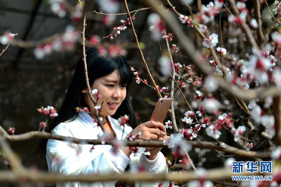 ????2月23日,游客在河北省巨鹿縣巨鹿鎮東辛莊村的溫室內觀賞杏花。