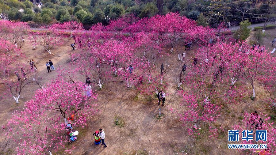 ????3月1日,游人在南寧市青秀山風景區桃花園游玩。