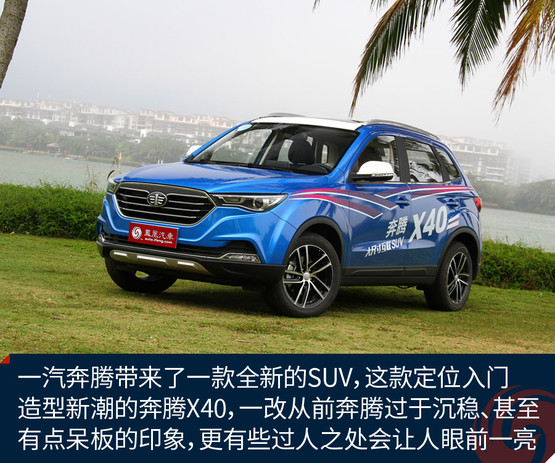 ?說到一汽奔騰,可能現在更多想到的是最暢銷的B50轎車,最熱門的緊湊級定位、老馬6的平臺、最好賣的10萬左右價格區間,使得B50一直是奔騰品牌最好賣的車型。但此前奔騰唯一的SUV——X80在近兩年一直表現得不溫不火,如今我們終于看到了奔騰家族的新鮮血液——奔騰X40。