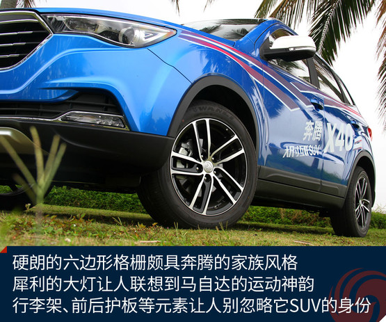 奔騰X40定位于一款小型SUV,雖然家族式的六邊形格柵線條依然有點生硬,但頗具馬自達神韻的大燈、帶有京劇臉譜線條的前臉、時尚前衛的雙色車身等,都讓它向目前大家更看重的顏值路線更近一步。能在第一眼抓住年輕人的心,這款車就成功了一半。