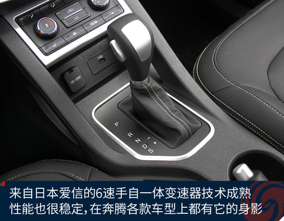 傳動系統匹配的是日本愛信第三代6速手自一體變速器在奔騰各款車型中都有所應用,響應速度、換擋機制等方面的表現都比較成熟、均衡。