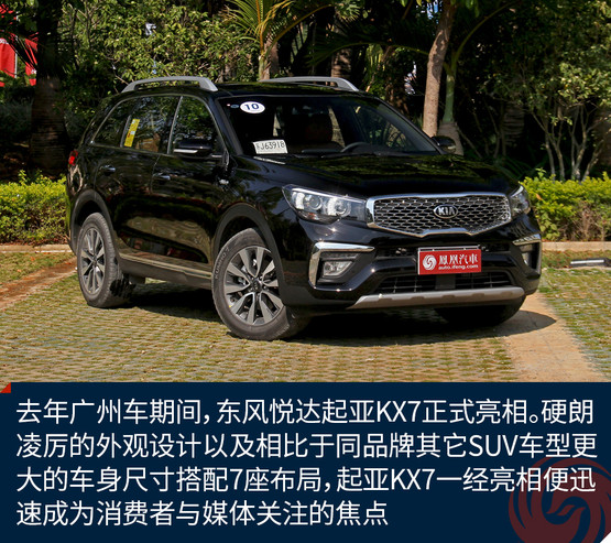 ?眾所周知,目前東風悅達起亞在國內SUV市場已經擁有智跑、KX3、KX5這三款SUV車型,但均是傳統的5座車型。面對迅速擴張的7座SUV市場,東風悅達起亞自然不會放過。在去年年底的廣州車展上,東風悅達起亞全新旗艦SUV——KX7正式亮相。盡管當時新車內部設計和配置信息并未公布,但憑借其硬朗、凌厲的外觀設計以及相比于同品牌其它SUV車型更大的車身尺寸搭配7座布局,起亞KX7一經亮相便迅速成為消費者與媒體關注的焦點。
