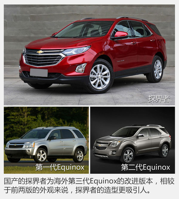 探界者其實并非科帕奇的換代車型,而是完完全全的一款全新車型,國產探界者也并不是第一次出現在世人面前;探界者早在北美市場供應,名為Equinox的它是通用汽車在北美市場最受歡迎的車型之一。這次引入國內的探界者已經是它的第三代車型,而第二代在整個北美市場位列全部車型銷量榜的第15位,可見其可靠的實用性和較高的性價比受到了多大的認可。