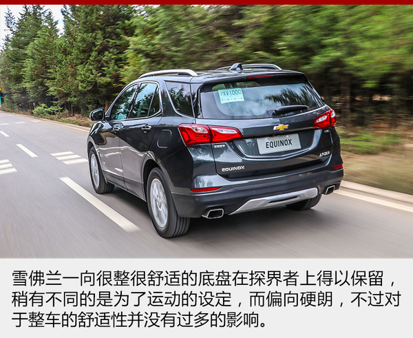 探界者的底盤受到雪佛蘭運動傾向的影響,被調校的有些偏硬,這樣對于車身側傾的抑制就非常到位,面對路面上連續的起伏,緊致的懸架也帶來很強的整體感。但是當面對較大的顛簸或者減速帶一類的時候,車身就會產生彈跳的感覺,而且懸架的回彈稍有延遲,總有一次小幅度的二次彈跳,稍稍影響了舒適性。