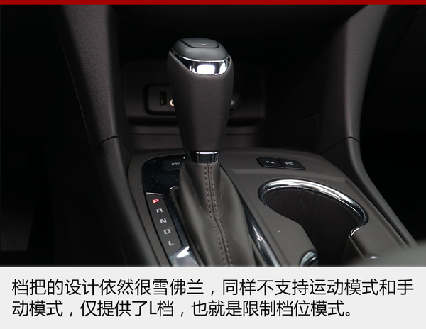 有一點我不是很明白,雪佛蘭最新的設計理念已經開始向運動發展,但是它旗下的車型都不帶有運動模式和手動換擋模式,僅僅是提供了L檔,也就是所謂的限位檔,通過檔把上方的加減按鍵可以手動使變速箱限制在相當的檔位上,D檔模式下此按鍵無效。