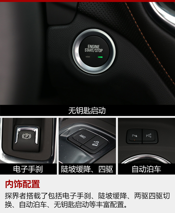 探界者與昂科威相似的尺寸與軸距面對其主要競爭對手其實并沒有任何優勢,不過考慮到其更加實惠的售價則完全可以接受,另外從實際的空間體驗來看也沒有過多受到這些毫厘之差的數據的影響。