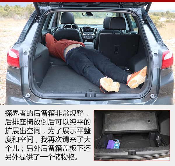 探界者作為一臺中型SUV在儲物空間的表現其實有些平庸,不算多的儲物格除了扶手箱以外基本沒有亮點,而且門板的儲物格也比較不實用;后備箱的空間倒是值得肯定,無論是座椅放倒后的平整和可擴展性,還是蓋板下方的小儲物格,都很靠譜。