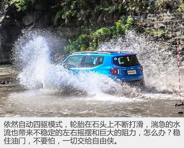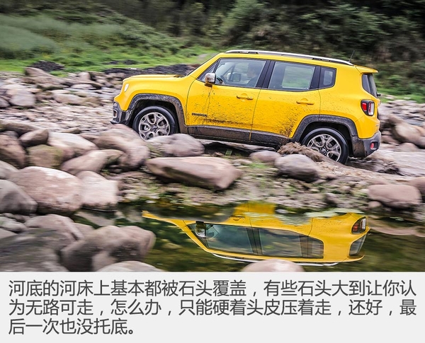 我從來也沒想過渡河是一件多么有樂趣的事兒,然而其實也挺危險的。水看著不是很深,但一下到水里就感覺坐進了船,漂在水上,湍急的水流沖的車身不斷輕微的搖擺,水中行車的阻力也很大,河底和河床上還遍布著大石頭,開著車就不斷的左左右右上上下下的顛簸著,不過只要穩住油門,其實很輕松。后悔提前拆了頂棚,看著車身兩側濺起的水花,很爽,也很濕。