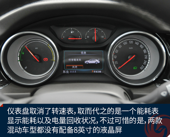 ????????不僅外觀,內飾的變化也很小,分層的設計立體感十足,各功能模塊的劃分也很清晰。儀表盤取消了轉速表,取而代之的是一個能耗表,顯示能耗以及電量回收狀況,不過可惜的是,兩款混動車型都沒有配備8英寸的液晶屏。