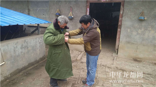 “前一段時間你給我們送的新被子還沒舍得蓋呢,這剛下大雪,又給我們送來了棉大衣。外邊太冷,快到屋里坐,快到屋里坐。”鄲城縣發改委主任孟憲紅把棉大衣挨家送到雙樓鄉張廟村貧困老人家中,張老漢感激不已,連忙讓座。