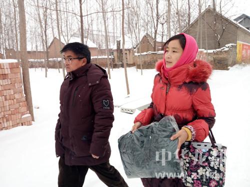 中華龍都網訊 (周口報業全媒體記者馬治衛文/圖)雪中的豫東大地,一片銀裝素裹。1月4日,太康縣常營鎮脫貧戶李紅欣喜地收到了該縣扶貧干部葛澤周一行冒雪送來的棉襖。同葛澤周一樣,當日太康縣萬余名黨員干部雪中忙幫扶。