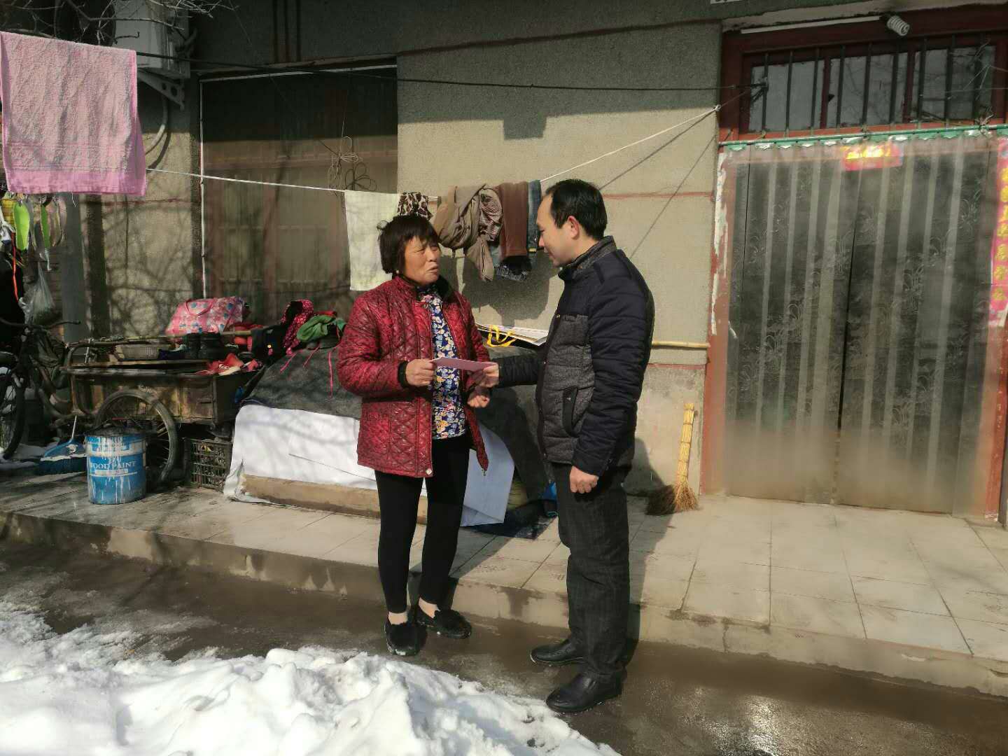 連日來,馬衛(wèi)東帶領(lǐng)相關(guān)部門人員輕車減從頂風(fēng)冒雪深入姚集、黃寨、練集、袁老等鄉(xiāng)鎮(zhèn)推門入戶,或暗訪督促脫貧攻堅(jiān)工作,或看望駐村工作隊(duì)員,或?yàn)樨毨羲蜕厦抟旅薇幻酌嬗偷取B飞希L(fēng)大冰堅(jiān)雪厚汽車打滑不能前行,他們就推車前行;村內(nèi),道路狹窄,積雪遍地,路況不明,他們就踏雪徒步前行,叩門入戶問寒暖;忙到天晚路黑不能回縣城,他們就在鄉(xiāng)政府找個(gè)辦室臨時(shí)住宿。每到一處,馬衛(wèi)東都要求縣鄉(xiāng)干部和駐村隊(duì)員克服困難,安下心來,了解貧困戶致貧原因、脫貧愿望,找準(zhǔn)癥結(jié),拿出具體可行的脫貧辦法幫助脫貧;把扶貧和扶志結(jié)合起來,幫群眾破除“等靠要”思想,增強(qiáng)脫貧信心,激發(fā)脫貧動(dòng)力。縣領(lǐng)導(dǎo)閆冬梅、李德來、李遠(yuǎn)富、胡國(guó)勝、李本磊、詹凱、李海濤、邵超、楊新權(quán)、韓秀娟、朱學(xué)習(xí)等也深入巴村、譚莊、位集、鄧城、東城等鄉(xiāng)鎮(zhèn)辦事處走訪慰問。