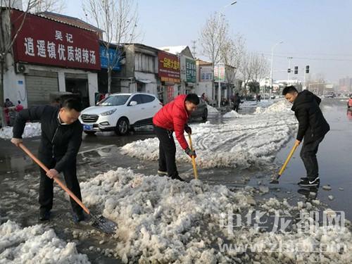 為有效緩解雨雪天氣行人車輛出行難題,該行組織員工赴五一路分包執勤點清掃積雪,方便市民出行。經過2個多小時的清除,路況明顯好轉,方便了車輛及市民通行。