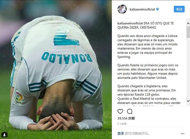 本賽季的C羅,狀態跌至谷底,門前缺乏進球,越來越多的球迷開始批評C羅。C羅的姐姐卡蒂婭-阿韋羅在社交媒體上力挺C羅,她寫了一大段話鼓勵C羅。