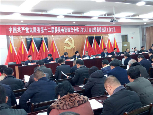 中華龍都網訊(周口報業全媒體記者馬治衛通訊員王凱)1月20日,太康縣在綜合樓一樓會議室召開中國共產黨太康縣委十二屆四次全體(擴大)會議暨縣委經濟工作會議。十二屆縣委委員、縣委候補委員,不是縣委委員和縣委候補委員的縣級現職領導,縣直單位黨政正職,各鄉鎮黨委書記、鄉鎮長,縣人大、政協工委、專委主任,縣委各部委辦常務副職,縣紀委常委、縣委巡察辦主任、縣委巡查組組長,部分黨代表,縣產業集聚區規模以上企業負責人代表參加會議。