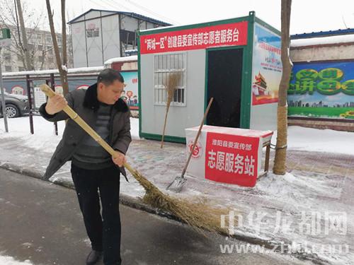 在兩個多小時的清掃積雪過程中,縣委書記馬明超深入康樂路衛生區和縣委辦干部、小區群眾一起鏟掃長長的道路積雪。馬明超指出,當前,淮陽正值創建全國文明縣城之際,良好的城市環境需要全縣人民共同維護,如及時清掃積雪,遇垃圾主動撿拾,不做不文明的事等,讓創建全國文明縣城成為廣大群眾民的自覺行動。