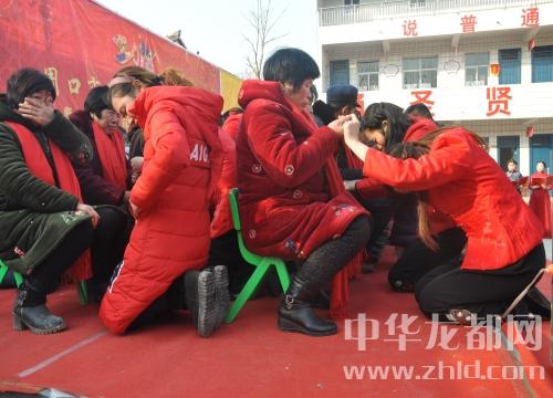 情景劇《時間都去哪兒了》表演結束之后,40多名老人在兒子、媳婦的攙扶下走上舞臺,在“從小你就告訴我,告訴我做人要懂得孝”的歌聲中,兒子、媳婦們向父母深深鞠躬,隨后重重地跪在父母面前,歸攏著父母花白的頭發,凝視父母滿是皺紋的面容,不少父母、孩子激動地流下了淚水,與兒女擁抱在一起。70多歲的位大爺表示,兒子這一跪打開了他們之間的心結,讓他們更加理解對方。魏集村老人譚玉榮說:“我與媳婦關系一直非常和諧,媳婦孝順,孫子也學著媳婦孝順,非常聽話,這次活動媳婦向我跪下述說自己的心聲,讓我們娘倆的關系更親近了。”