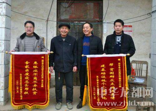 中華龍都網(wǎng)訊(周口報(bào)業(yè)全媒體記者 高洪馳)2月9日,西華縣水利局局長(zhǎng)與駐村幫扶隊(duì)員一起,前往水利局幫扶村東王營(yíng)鄉(xiāng)王化本村看望慰問(wèn)貧困戶,為他們送去年貨和新春?jiǎn)柡睢.?dāng)他們來(lái)到貧困戶王恒占家中慰問(wèn)時(shí),王恒占將事先準(zhǔn)備好的上寫有“幫貧困群眾點(diǎn)滴送真情、建基礎(chǔ)設(shè)施個(gè)個(gè)落實(shí)地”“患眼疾不離不棄扶貧、舍家親廢寢忘食幫扶”的兩面錦旗,送到王新長(zhǎng)和駐村第一書記王良弼手里,感謝縣水利局和幫扶隊(duì)員在脫貧攻堅(jiān)工作中對(duì)王化本村的傾心幫扶。
