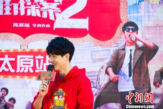 中國內地男演員10日現身太原分享新電影《唐探2》幕后拍攝花絮。 張云 攝