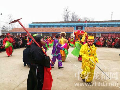 “前幾年農閑真是把人閑得心慌,每天都是吃飽等餓、仰著臉上曬日頭。現在黨的政策好,幫俺提起了精氣神兒,俺村20多個老頭老太太組成一支竹馬旱船腰鼓花棍廣場舞隊,年輕的時候會一點,現在見演出就來學一點,上一次李全林縣長晚上住俺這里幫扶,在俺這里看演出,說俺也成專業隊了。”這個群眾隊的隊長是78歲的羅有德、扮相是孫悟空,旱船里的“花媳婦”是80歲的郭蘭英。連續15分鐘的蹦跳表演之后摘掉面具接受記者采訪時,群眾們都不敢相信他們這么大年齡還跳得這么起勁兒。“你們的演出隊名字太長了”記者說,“哈哈哈哈,俺老頭老太太都是‘三板斧’,也不會起名字,會的這幾招兒都寫到名字上了。”羅有德、郭蘭英大笑著回答。
