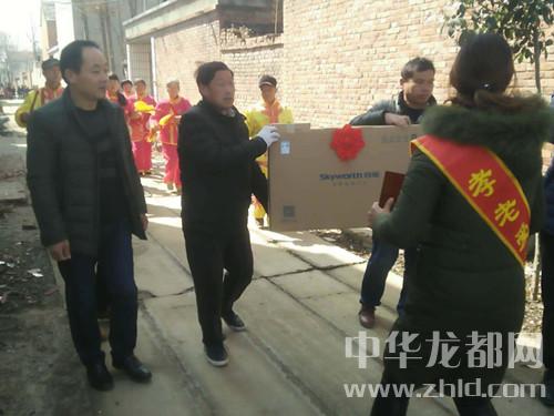中華龍都網訊周口報業全媒體記者 徐松)3月5日,鄲城縣寧平鎮組織宣傳隊,鄉村干部隨同,宣傳隊敲鑼打鼓,將全縣“十行百佳”表彰大會獎勵“兩建三扶四評”模范家庭的電視機逐戶送到標兵家中。以讓先進者榮光,激勵全縣百萬群眾崇尚孝老愛親、脫貧致富、誠信守法、清潔家園之文明新風,凝聚全縣人民萬眾一心、決戰決勝脫貧攻堅戰。像寧平鎮一樣,該縣各鄉鎮在鄲城縣首屆“十行百佳”表彰大會之后,陸續開展讓光榮戶無尚光榮、讓普通群眾見善思齊之隆重送獎品上門活動。