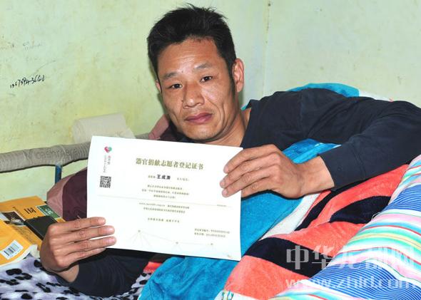 “我喜歡看書,這些書我不知看了多少遍,村里的伙伴給我買書、借書。有時在網(wǎng)上讀書……”記者在現(xiàn)場看到,在王成濤的房間里,除一臺電腦外,還有幾本勵志的書,其中有世界名著《鋼鐵是這樣練成的》,王成濤說,近20年里,他飽受身體上的病痛,但他始終保持著良好的心態(tài),堅強地活著。2014年,他背著家里人在網(wǎng)上填寫了《人體器官捐獻登記表》,完成器官和遺體捐獻志愿者的網(wǎng)上登記手續(xù),今年,他接觸到鹿邑縣紅字會志愿者協(xié)會的劉傳保、張玉勤等人,在他們的幫助和見證下,他于近日順利簽下申請捐獻遺體志愿者書。