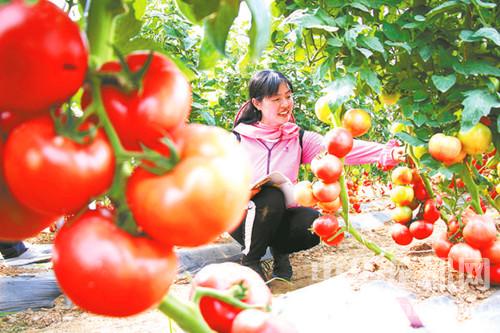 依托河南農業大學專家團隊,扶溝縣蔬菜研究院研發出400多個番茄新品種,通過集中展示讓種植戶優中選優,并實施對貧困戶購買種苗優惠50%、特困戶免費供應的優惠政策,帶動206戶貧困戶實現脫貧。圖為工作人員在記錄番茄新品種的試驗數據。谷志方 攝