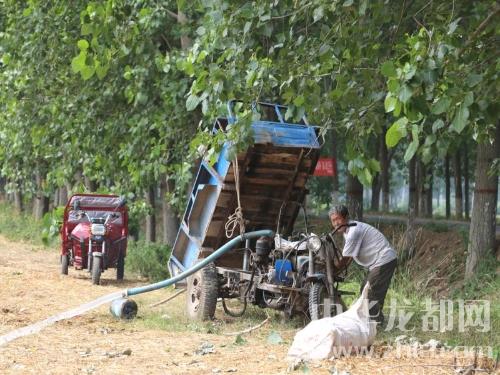 中華龍都網訊(周口報業全媒體記者 李瑞才 通訊員 胡洪濤 孫廣合)6月17日,鹿邑縣鄭集鄉曹牌村農民曹昌文在抗旱澆地。 自6月初進入“三夏生產”以來,連續高溫無有效降水,全縣受旱面積達到50多萬畝,為應對持續發展的旱情,鹿邑縣緊急召開抗旱保秋工作推進會,安排部署全縣上下集中力量投入抗旱,爭取用10天左右的時間把全縣50多萬畝秋作物澆灌一遍。和鄭集鄉一樣,目前,鹿邑全縣農村已迅速掀起抗旱保苗高潮。