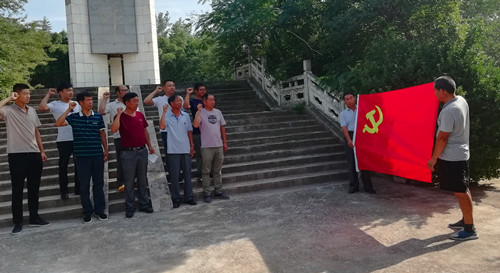 在杜崗會師紀念碑前,該所黨組書記張偉民帶領(lǐng)農(nóng)科所全體黨員面對黨旗莊嚴宣誓。入黨積極分子及扶貧隊員表示,通過今天的主題黨日教育活動,更加堅定了入黨的信心和決心,堅定了為共產(chǎn)主義奮斗的信念,在以后的工作在中,一定更加積極的向黨組織靠攏,聽黨的話,自覺接受黨組織的監(jiān)督和考驗。