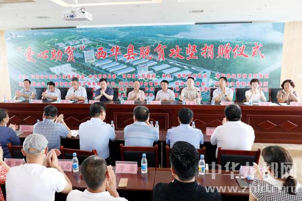 中華龍都網訊(周口報業全媒體記者 張猛 通訊員 常軍偉)7月14日上午,西華縣“愛心助貧”脫貧攻堅捐贈儀式在經開區9樓會議室舉行。縣委書記林鴻嘉,縣委副書記、政法委書記程維崢,縣政協主席郭峰,縣委常委、宣傳部長楊鳳臣,副縣長毛茹,經開區主任宋廣良以及省委宣傳部原副部長王嶺群,省政協辦公廳原巡視員王漢英等出席捐贈儀式。