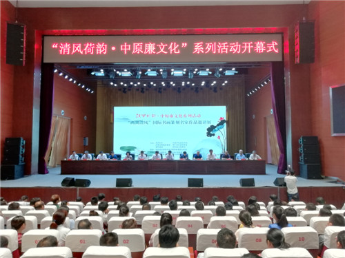7月24日上午,“清風荷韻·中原廉文化”書畫篆刻名家作品展暨國家治理名家大講堂等系列活動在淮陽縣舉行。省紀委監察委宣傳部長袁勇、省社科院黨委副書記周立、河南日報報業集團大河網總編輯孟磊、中央黨校《學習時報》副總編輯楊英杰及淮陽縣委書記馬明超、縣長王毅等出席。活動由市委常委、紀委書記、監察委主任劉孟連主持。