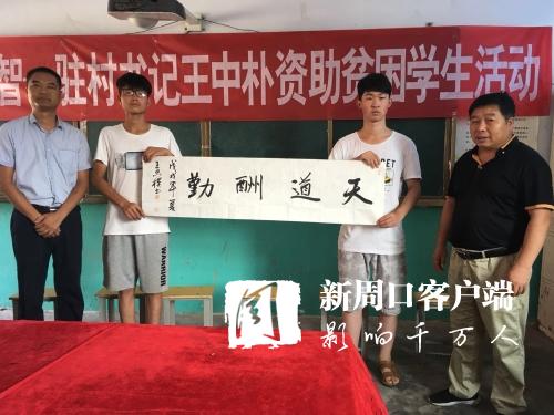 7月24日,對于鄲城縣虎崗二中九年級畢業生梁樂丹等14名同學來說是一個難忘的日子,他們在領取鄲城一高錄取通知書的同時,還收到了縣衛計委駐村第一書記、縣書法家協會秘書長王忠樸為他們送來的500元現金和勵志書法作品。當日上午,虎崗鄉黨委書記王申、虎崗中心校長鄭中民、接受捐贈的14名學生和相關老師及家長代表30余人,在虎崗二中會議室舉行了簡單而隆重的捐贈儀式。