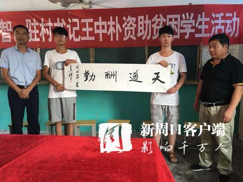 扶貧先扶智,為弘揚“扶貧濟困,崇德向善”的傳統美德,使貧困學生順利完成學業,實現自己的理想,王忠樸主動與虎崗鄉中心校聯系,為14名考上鄲城一高的貧困學生每人資助500元現金和一幅自己親自為受資助的14名貧困學子親筆題字,激勵他們奮發向上,早日成才。