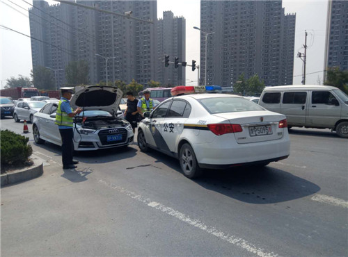 8月26日中午11點,周口港區公安分局民警發現,一輛私家車行經周項路周口港區路段時,發生故障停在快車道,影響道路暢通。港區交警部門負責人姜亞偉上前了解情況,得知汽車電瓶出現故障,無法正常發動。于是姜亞偉將警車開到私家車旁,用汽車電瓶連接線將警車電池與私家車鏈接,幫助車主啟動汽車,迅速恢復道路交通秩序。